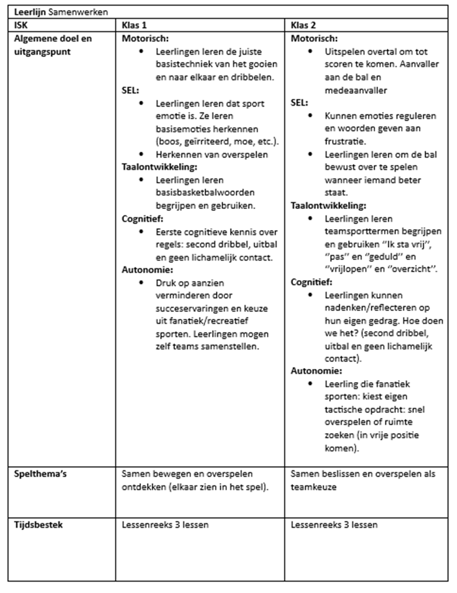Om aan te kunnen tonen dat ik aan de leeruitkomst ‘vakinhoudelijk’ voldoe, heb ik lessen gerealiseerd, verantwoord en geëvalueerd. Dit deed ik vanuit gegeven kaders. De lesthema’s waren al bepaald alleen mocht ik zelf de lessen inrichten. Dit deed ik vanuit mijn visie op het bewegingsonderwijs, maatschappelijke- en pedagogische opvattingen. Deze heb ik dan ook uitgewerkt. Dit heb ik ook voorafgaand aan een les verantwoord en uitgeschreven. Ook heb ik een eigen leerlijn gemaakt en uitgeschreven die nog niet bestond in het vakwerkplan van de ISK. Eén lessenreeks van de betreffende leerlijn heb ik dan ook volledig uitgewerkt.