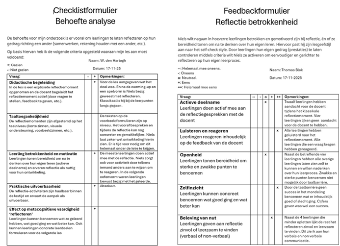 - Analyse van ingevulde reflectieformulieren;