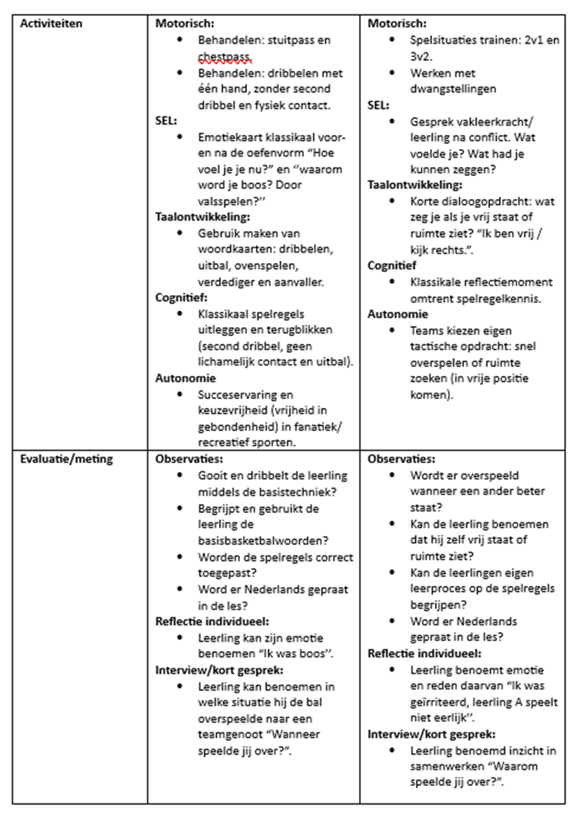 Waar ik dit semester meer uit had kunnen halen was het evalueren met de leerlingen. Dit deed ik altijd al na de les alleen had dit vaak nog sterker en beter gekund. Nu ging dat erg moeizaam door de taalbarrière. Het evalueren van de les op de doelstelling maakt een les natuurlijk leerzaam. Ik wil mijzelf hier volgend semester meer in gaan verdiepen en meerdere strategieën vinden om toe te kunnen passen in mijn lessen. De informatie die ik uit het evalueren krijg kan ik dan toepassen in de volgende lessen. Ook wil ik de leerlingen actiever betrekken bij de evaluatie. Leerlingen zijn vaak niet meer gemotiveerd aan het einde van de les. Ze zijn met hun gedachtes niet meer in de leerstof, en willen naar mijn idee vaak snel weer omkleden.